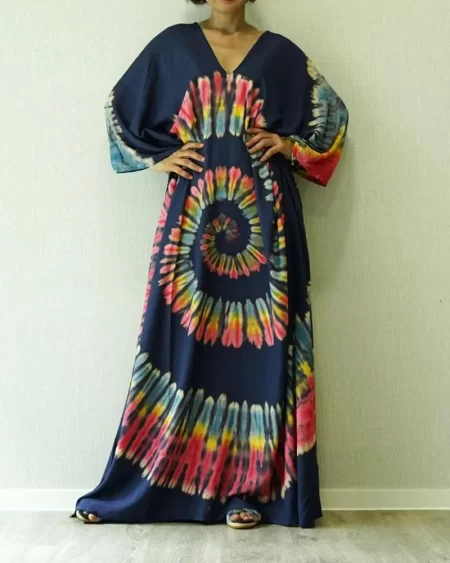 Be the first to review “Printed V Neck Ruffle Hem Sleeveless Tassel Design Casual Loose Midi Dress”